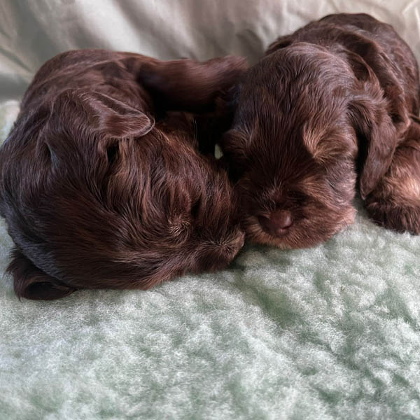 Vrijdag 20 februari: Golden Doodle Roxy is trotse moeder geworden van vijf prachtige pups. De geboorte van de puppen was nog wat vroeger dan we hadden verwadht maar verliep erg soepel. We zijn ontzettend blij met hun komst en genieten volop van deze bijzondere tijd. Roxy is een volleerde en een zorgzame en ontspannen moeder, en het is mooi om te zien hoe liefdevol zij haar pups begeleidt in hun eerste dagen. De pups groeien goed en ontwikkelen zich voorspoedig. De komende weken staan in het teken van rust, warmte en een fijne start in het leven.