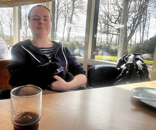 Tijdens de lunch gedroegen de puppen zich keurig in het restaurant. Ze bleven lekker in de benches liggen slapen en we namen ze om en om er even lekker uit. Wat een makkelijke puppen!