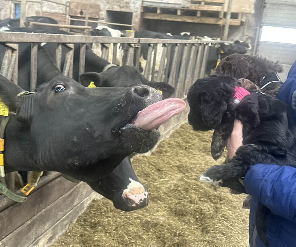 Vrijdag 3 april: socialisatie bij de boer..... puppen leren geuren en zien vreemde dieren en dat vinden ze best interessant!