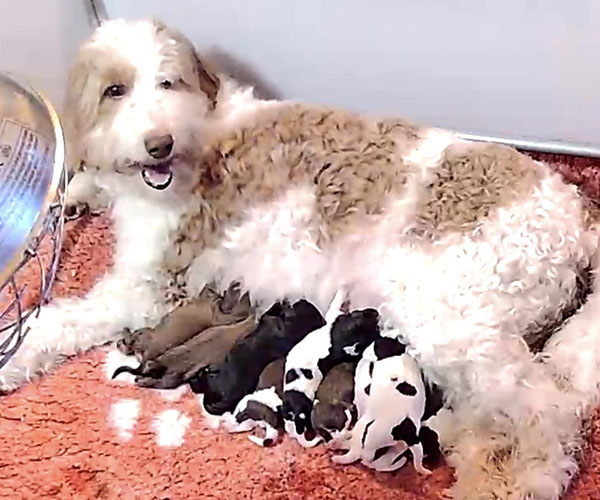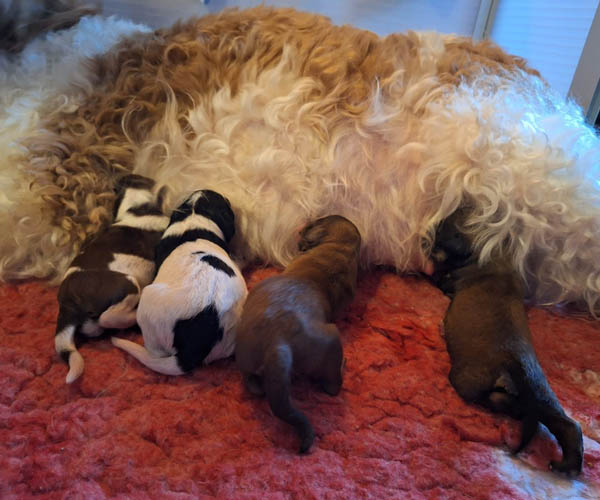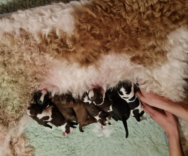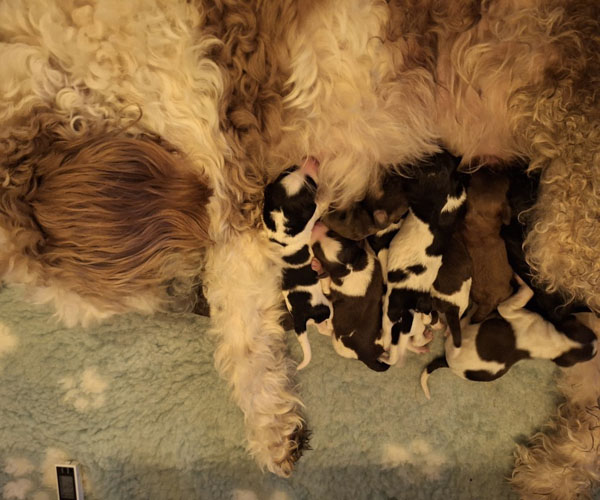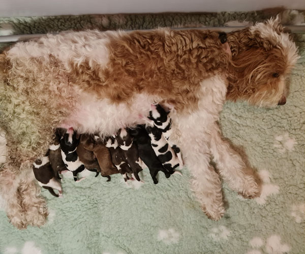 Donderdag 9 april: heeft onze lieve Amy een prachtig nest PonDoodle pups op de wereld gezet.