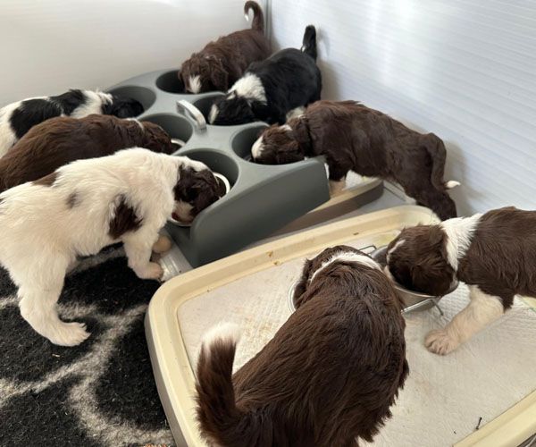 Aangezien PonDoodle Mollie dezelfde dag 3 puppen heeft geworpen was het een bijna logisch gevolgd dat we een aantal puppen van Amy bij Mollie zouden leggen om Amy te ontlasten. We hebben de 3 grootste teefjes bij Mollie gelegd en zij heeft de puppen met liefde ontvangen.