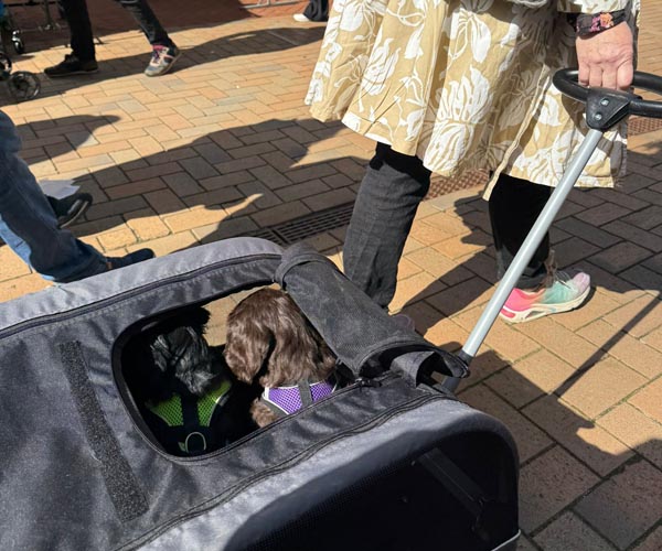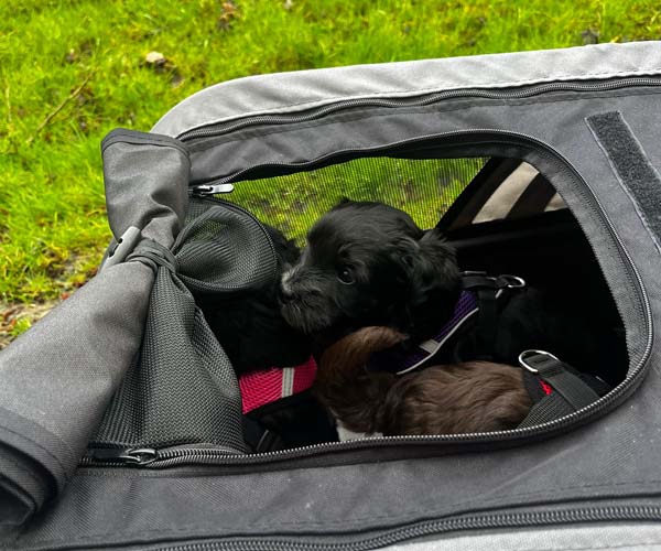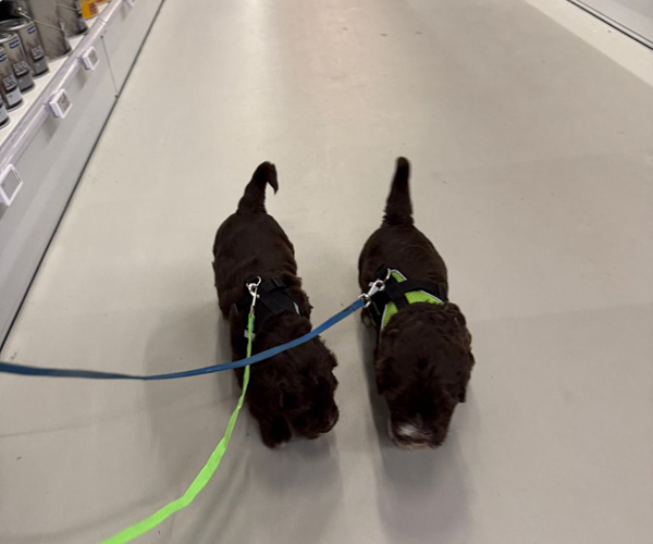 Ook zijn ze voor het eerst mee geweest in de hondenbuggy. Veilig samen op pad, de wereld ontdekken vanuit hun knusse plekje. En alsof dat nog niet genoeg was, hebben ze ook hun eerste uitstapje naar de dierenwinkel gemaakt. Nieuwe geurtjes, geluiden en indrukken... wat hebben ze het goed gedaan!