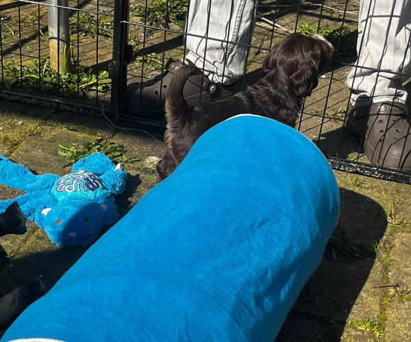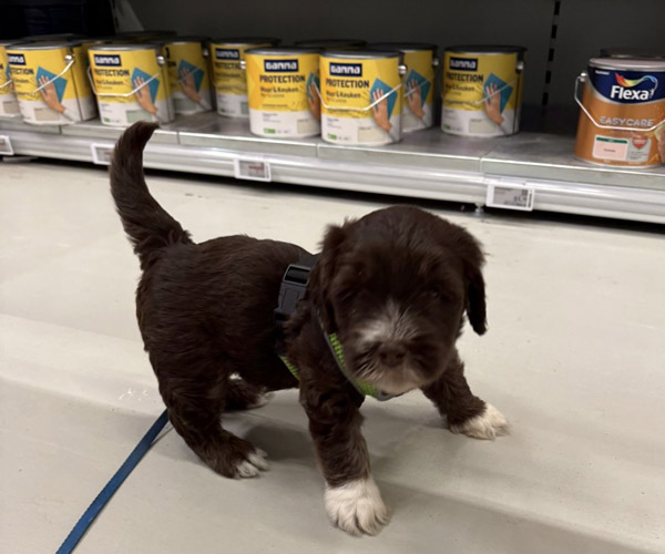 Maandag 30 maart: de puppen zijn mee geweest naar de bouwmarkt; een hele belevenis vol nieuwe geuren, geluiden en indrukken. Dit soort uitjes helpt hen om op een positieve manier te wennen aan verschillende omgevingen en situaties. Daarnaast spelen ze nu dagelijks korte momentjes buiten, waar ze op ontdekking gaan en hun zelfvertrouwen verder ontwikkelen.