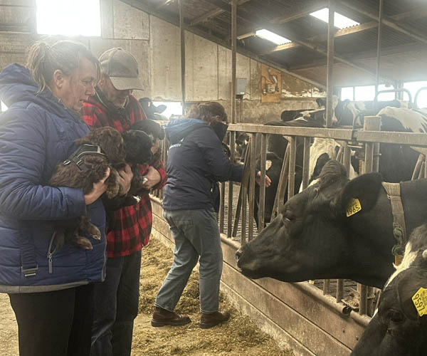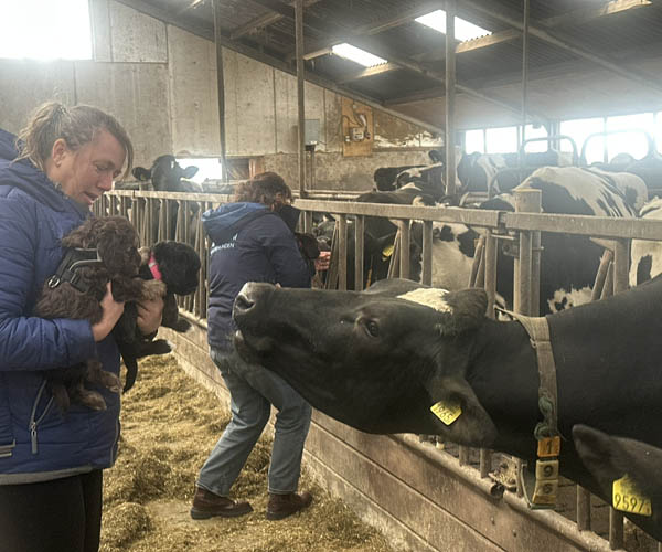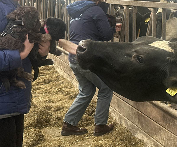 Vrijdag 3 april: socialisatie bij de boer..... puppen leren geuren en zien vreemde dieren en dat vinden ze best interessant!