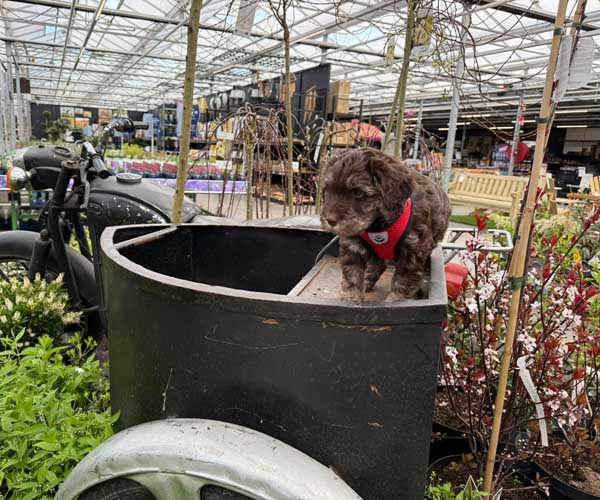 Zondag 5 april: wat kun je op 1e paasdag beter doen dan naar een tuincentrum met de puppen?