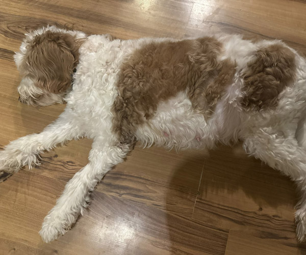 Onze Golden Doodle Amy heeft romantische dates gehad met onze Nizinny Guus en met onze Nizinny Twix. Amy kende Twix van een vorig nest en ze heeft met beide heren leuk gespeeld.