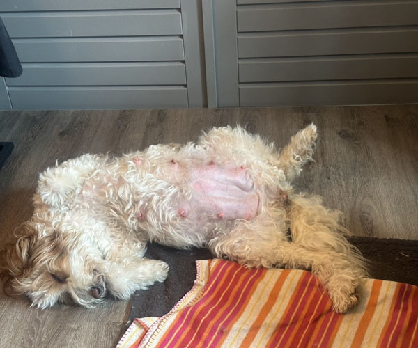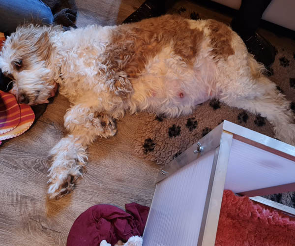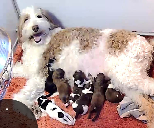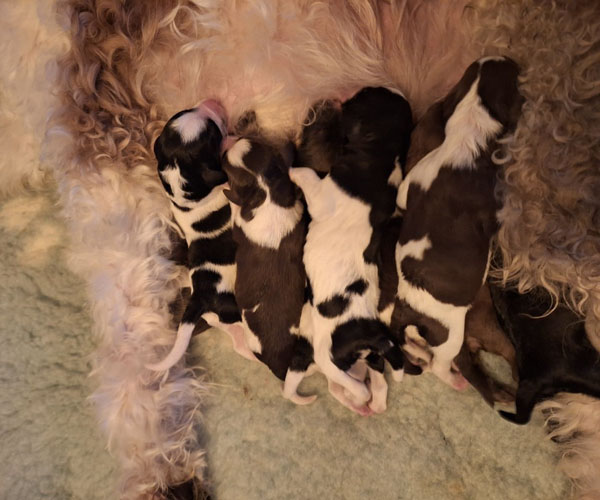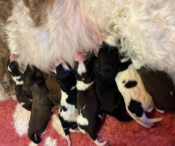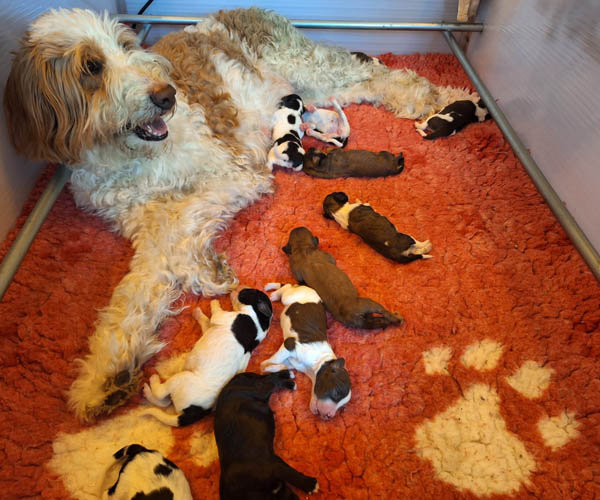 Donderdag 9 april: heeft onze lieve Amy een prachtig nest PonDoodle pups op de wereld gezet.